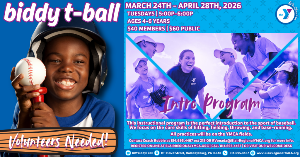 We’re very proud of our Youth Sports Programs for children of all ages. Come see what we offer at BLAIR REGIONAL YMCA in Hollidaysburg, PA. Stop in for a visit! Questions? You can call the Y directly at (814) 695-4467.