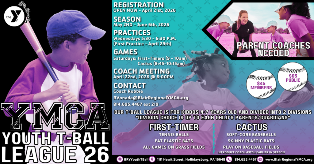 FOR REGISTRATION INFORMATION, CALL BLAIR REGIONAL YMCA AT: (814) 695-4467.